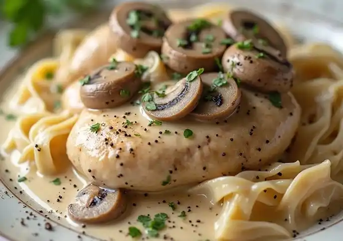 Le poulet sauce crémeuse aux champignons est un plat chaleureux, plein de douceur et de caractère. En jouant sur les textures, les épices, et les accompagnements, tu peux l’adapter à tous les goûts et toutes les occasions. C’est une recette qu’on adopte vite… et qu’on refait souvent.